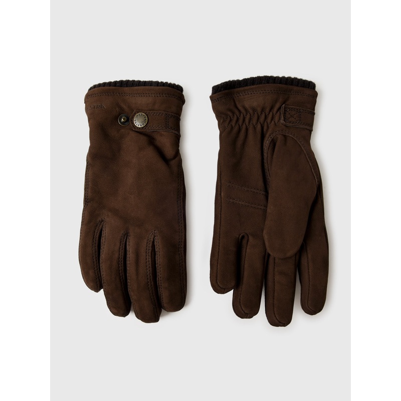 DESCRIPTION:This pair of winter gloves is crafted from luxurious nubuck goatskin for a stylish and durable design. The short, ribbed cuff and leather strap add a touch of sophistication, while the soft fleece lining and Primaloft Gold insulation provide ex
