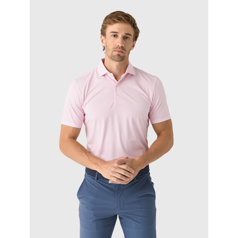 DESCRIPTION:This polo offers superior performance and a polished look. Made from soft, breathable fabric, it features exceptional stretch, moisture-wicking properties, and a geometric print. FEATURES:Spread Collar3-Button PlacketAll-Over Novelty Print4-Way