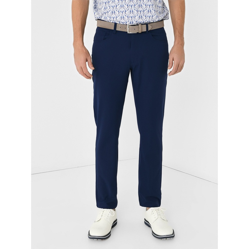A moisture-wicking pant made from a breathable woven performance fabric with a modern five-pocket design.