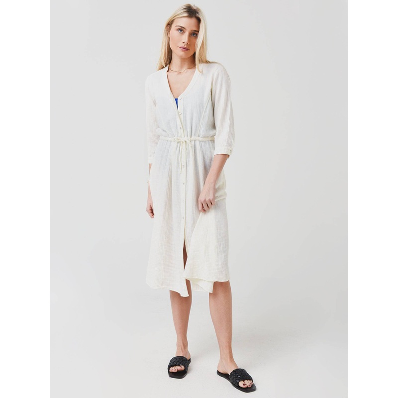 DESCRIPTION:Welcome the warm weather in the lightweight Honorine Women's Georgia Dress.FEATURES:Maxi DressV-NecklineFront Button ClosureSelf Tie Waist3/4 Length Sleeve w/ Button CuffSide Seam PocketsLightweight FabricationRelaxed FitEven Hem100% Cotton Gau