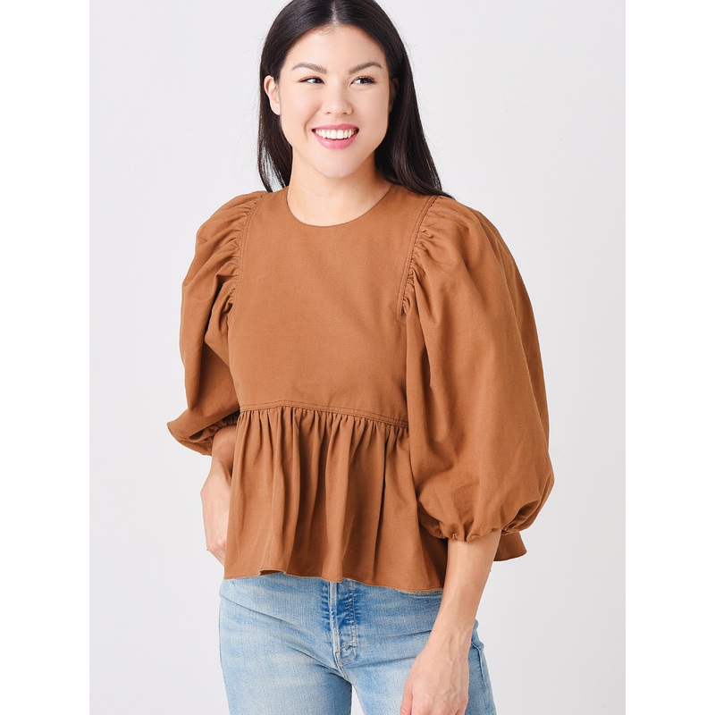 DESCRIPTION:The Hunter Bell Women's Harlow Top delivers the optimal dose of femininity to any occasion.FEATURES:BlouseHigh NecklineShort Puff SleevePeplum HemBack Button-Keyhole ClosureStructured Silhouette100% Cotton PoplinModel is wearing size Small blou