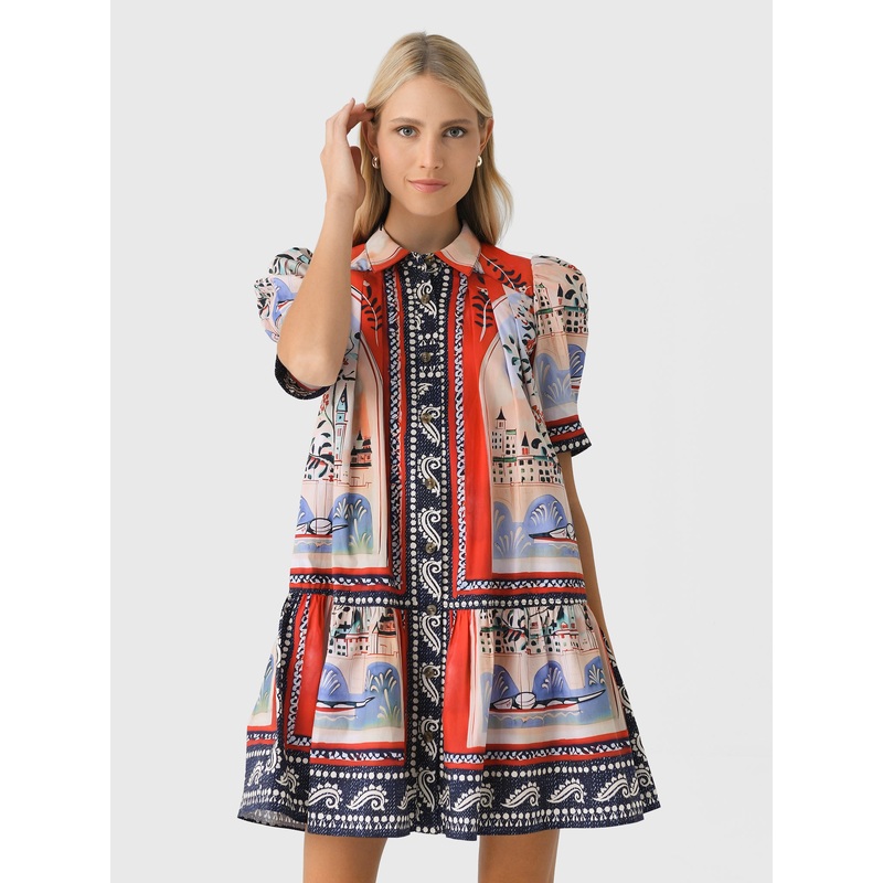 DESCRIPTION:Crafted from crisp cotton poplin, this easy mini features a collared neckline, button front, and voluminous elbow-length sleeves with pleated openings for a breezy, polished silhouette.FEATURES:Spread CollarPuff SleevesButton-Down FrontFlounce