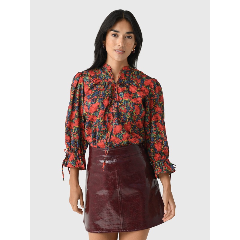 DESCRIPTION:Crafted for effortless charm, this blouse is a romantic addition to your everyday wardrobe. It features a flattering V-neckline with a tie keyhole and a partial button placket. Delicate puff sleeves end in adjustable tie cuffs, adding a touch o