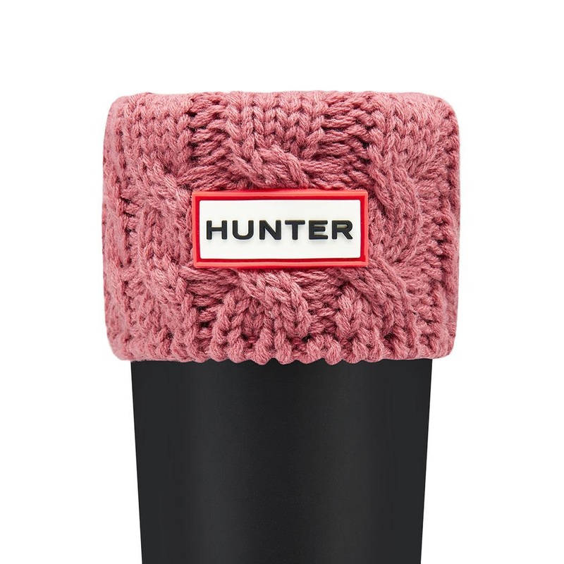 Hunter Rain Boots Girls' Cable Boot SockSTYLE # KAS4024AAB DESCRIPTION:Designed for Hunter rain boots, these cozy fleece boot socks features a cable-knit cuff with logo detail. FEATURES:Foldover cable-knit cuffRubber logo detailPolyesterCuff: AcrylicMachin