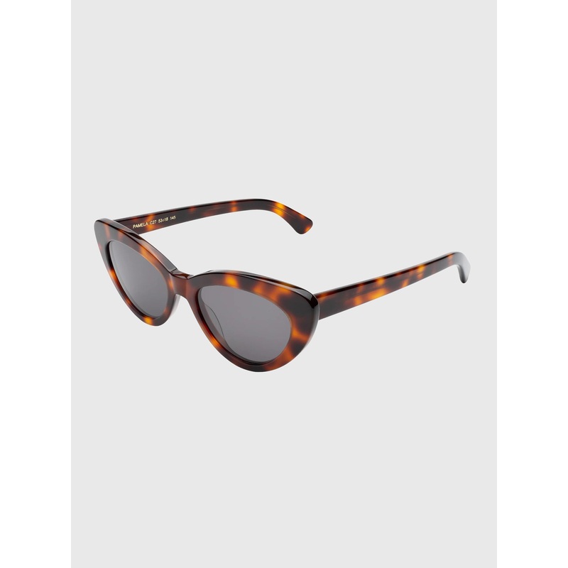 DESCRIPTION:Step back in time with the Pamela frame. This bold acetate design channels retro charm with its captivating cat-eye silhouette.FEATURES:Cat Eye ShapeFull Rim StyleFrame: AcetateLens: UV400Polarized, UVA + UVB ProtectionSize: 53-18-140Cleaning C