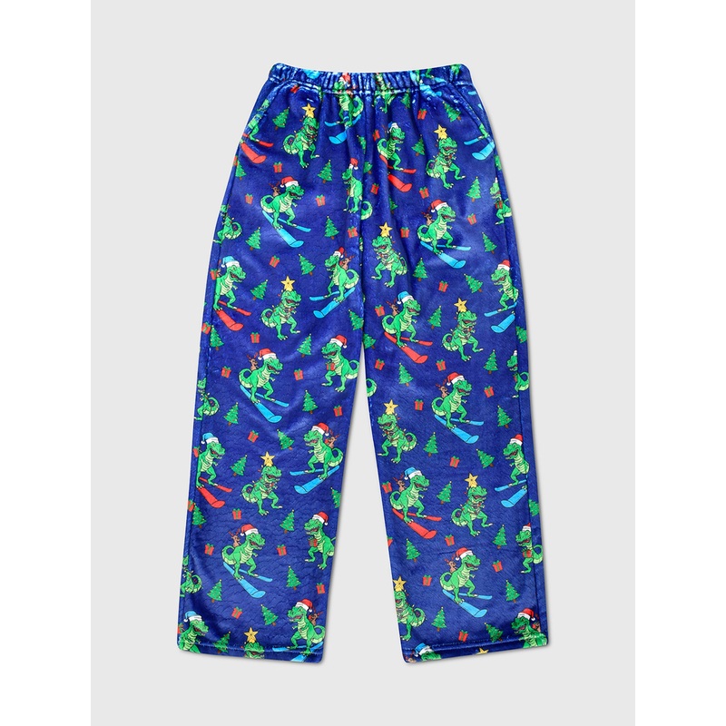 DESCRIPTION:A soft and cozy plush pajama pant featuring a festive dinosaur print.