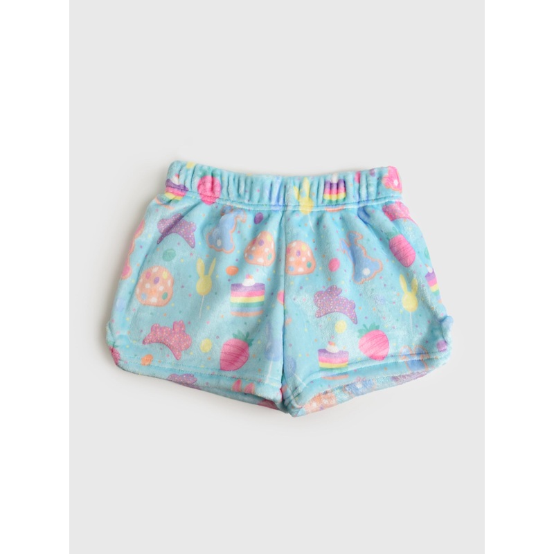 DESCRIPTION:A cozy pajama short made from soft fleece fabric with a colorful print.