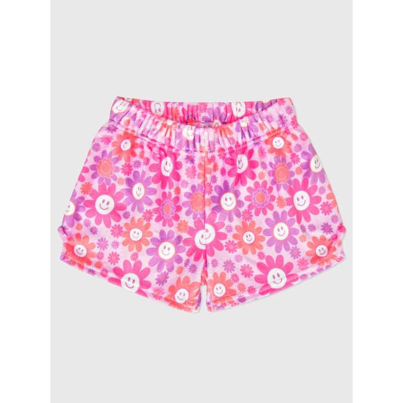 DESCRIPTION:A plush pajama short made from soft fleece with a custom groovy smile print.