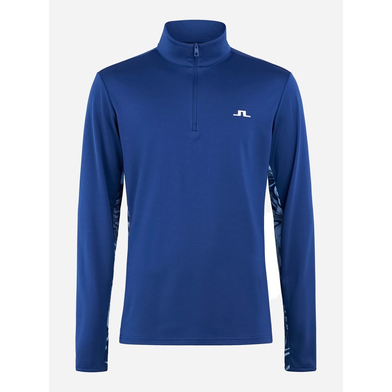 Mid-layer pullover with moisture-wicking and quick-drying properties with floral-printed side panels.