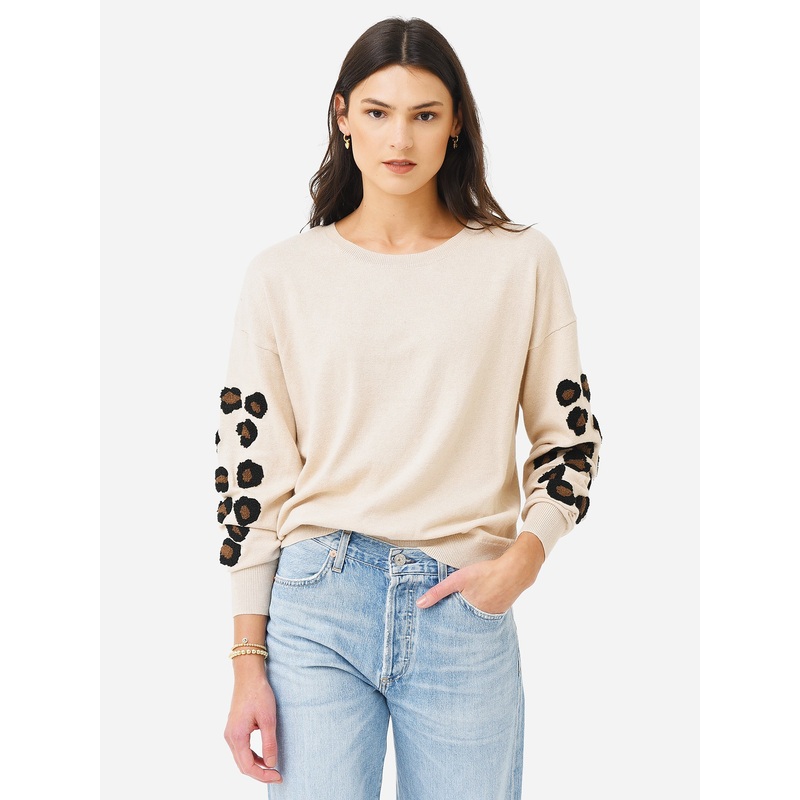 DESCRIPTION:Soft crewneck sweater with animal print details.FEATURES:SweaterCrew NecklineDropped ShoulderLong Sleeve with Tufted Animal Print DetailBanded Cuffs and HemSoft Fabrication100% CottonClassic FitModel is wearing size Small sweater.Wicker: Model'