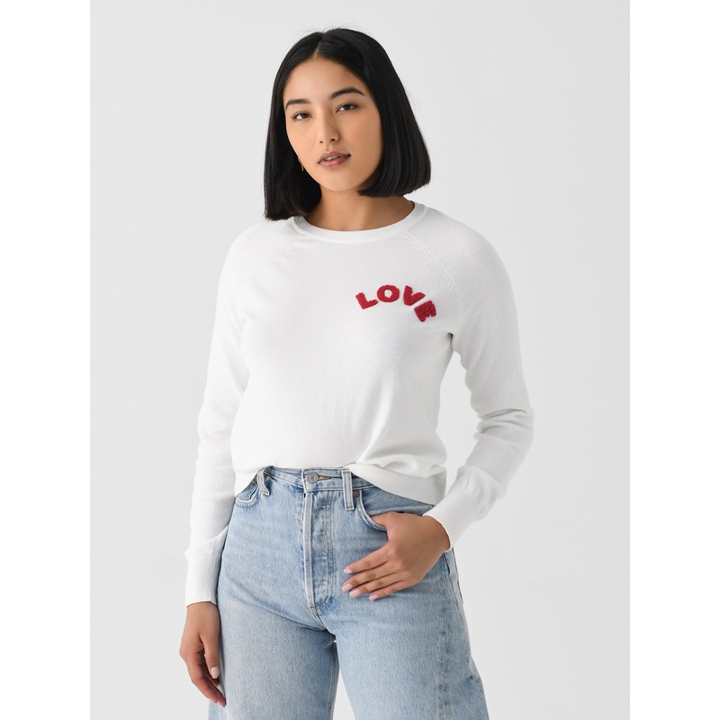 A classic crewneck sweater made from lightweight cotton with a contrast chenille graphic.
