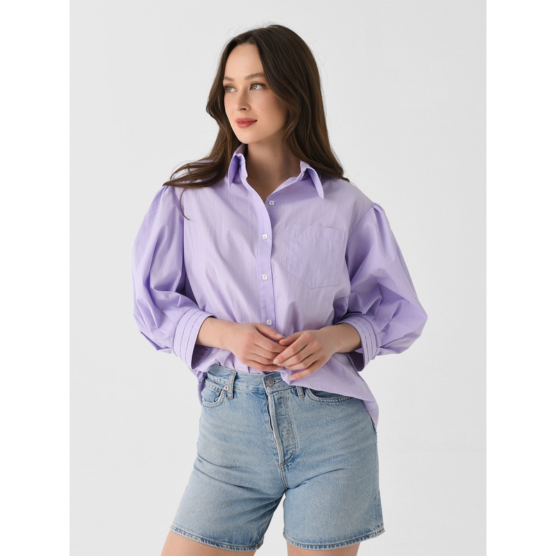 DESCRIPTION:This crisp top offers the structure of a traditional button-down with an elevated feminine puff sleeve and pleated details.FEATURES:Spread CollarLeft Chest Pocket3/4 Length Puff SleevesButton CuffsButton-Down PlacketCurved HemRelaxed FitModel i