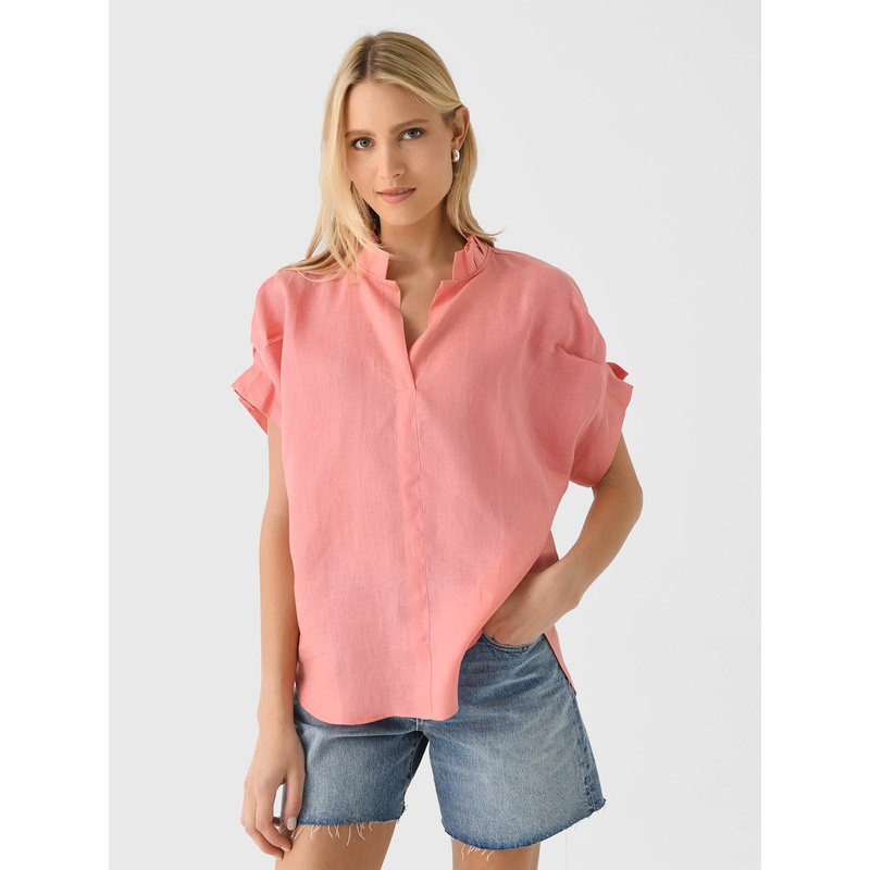 DESCRIPTION:The Renea top features ruffles at the neck and cuffs, adding a subtle, feminine detail you'll love. True to JAG's signature style, it has a slightly oversized fit that's comfortable and flattering on all body types.FEATURES:Ruffle CollarV-Neckl