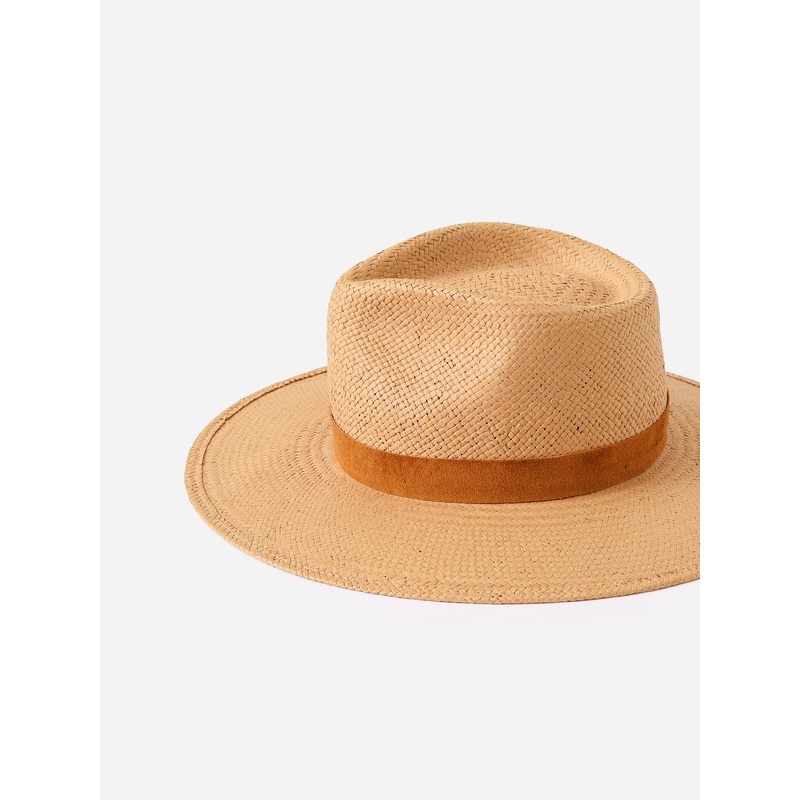 DESCRIPTION:Modern fedora hat made from durable and packable straw.FEATURES:HatFedora StylePinched CrownPackable StrawBrim: 3.5 in.Crown: 4.25 in.1 in. Brown Suede BandGold Screw ClosureUPF 45+ Sun Protection