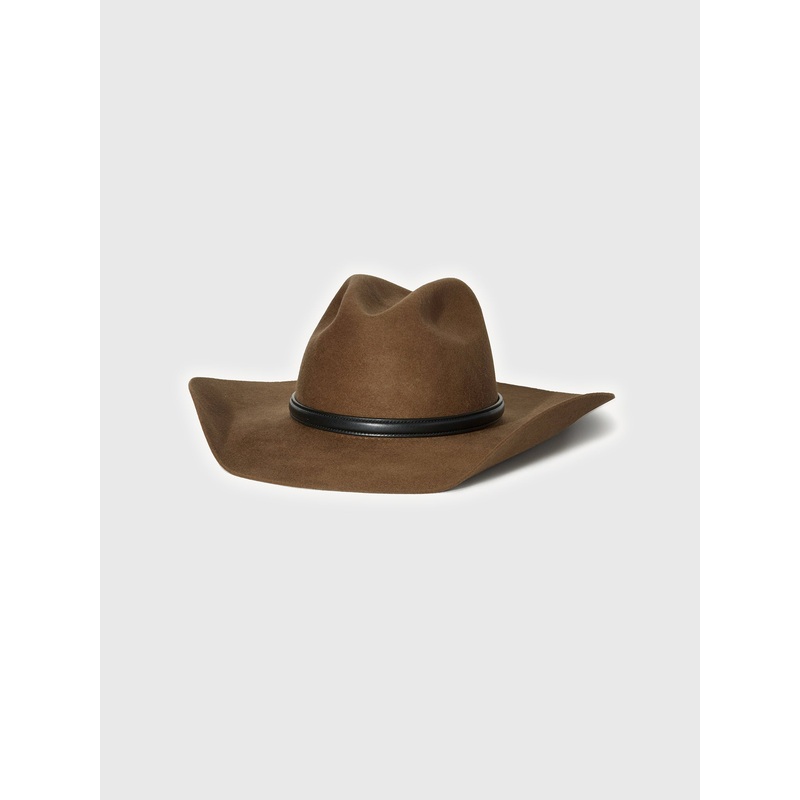 Nash is a bold Western fedora with a structured, stiffened wool crown. Finished with a regenerative leather band, it offers a refined yet rugged edge.