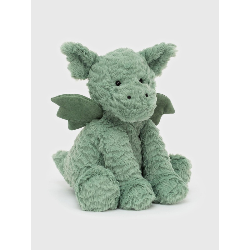 *Limited to 3 per customer.* Fuddlewuddle Dragon currently works at his local indoor ice rink and while its going swimmingly now, his first shift was eventful. One sneeze, a burst of steam, and a very soggy arena later, hes been on his best behavior ever since. These days, hes the rinks official hand-holder-in-chief offering a steady wing to nervous skaters like Rumblikin Bear, who swears his wobbles are pure artistic expression. With soft sage fur and a serious sense of responsibility, Fuddlewuddle keeps a gentle watch from above. And there’s not been a single puddle in sight since!