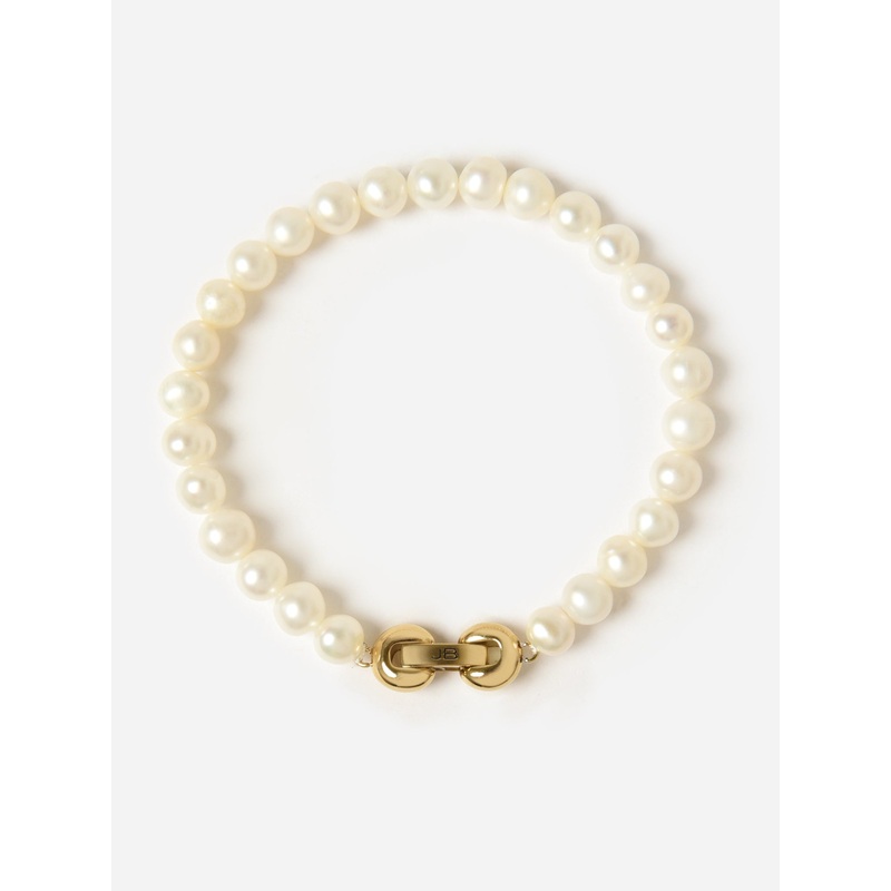 A high-polish bracelet featuring a strand of freshwater pearls.