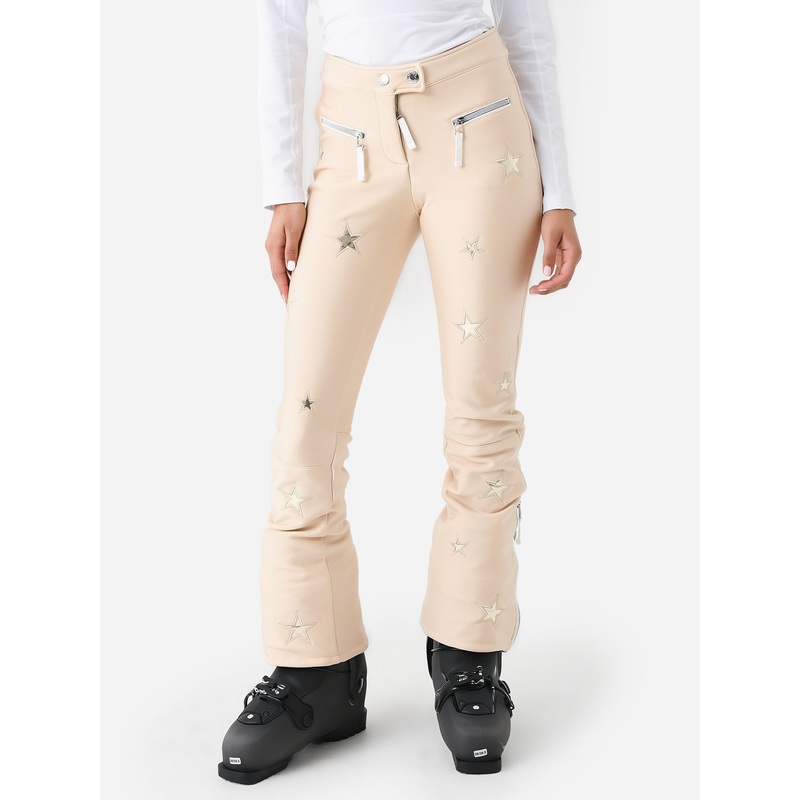 DESCRIPTION:Water-resistant ski pant featuring ergonomically shaped knees and a glamorous star motif.FEATURES:High WaistedButton, Zip-Fly ClosureFront Zip PocketsErgonomically Shaped KneesPowder Cuffs with Gripper ElasticHem GussetsFront Star MotifFlared S