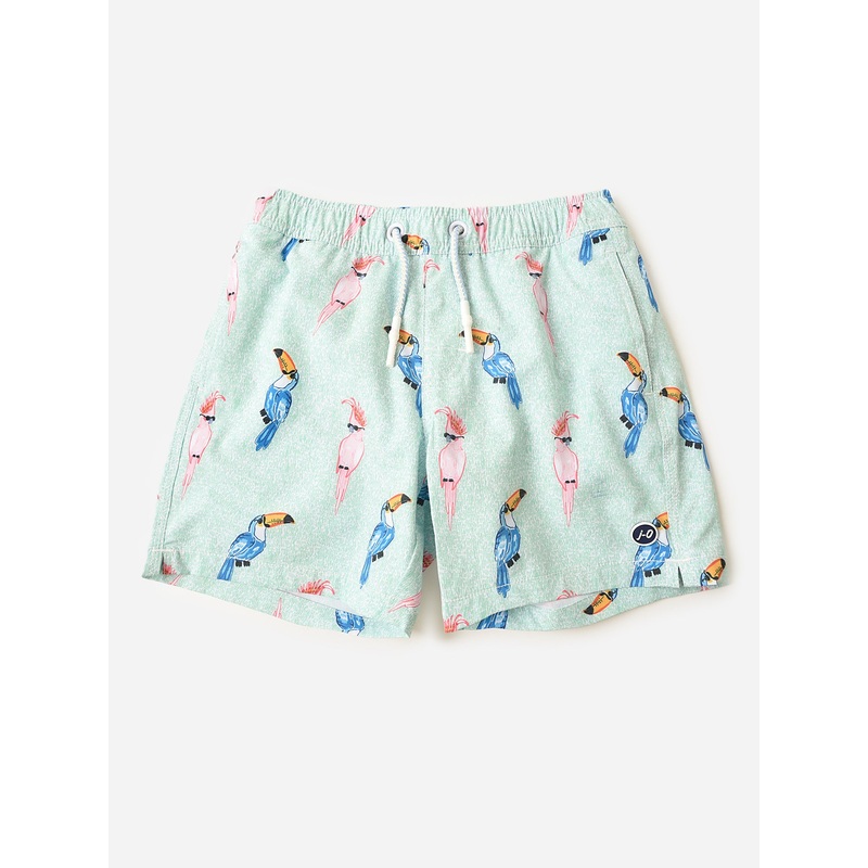 DESCRIPTION:A classic swim trunk with a full mesh lining and a colorful bird print.