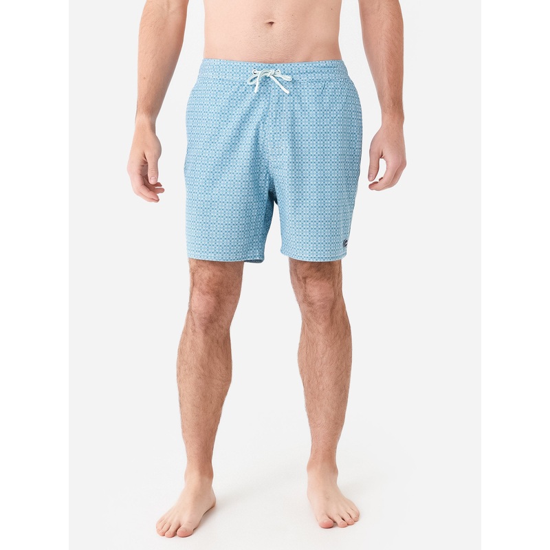 DESCRIPTION:Lightweight swim trunks with a half-elastic waistband and comfortable mesh lining.FEATURES:Swim TrunkHalf-Elastic WaistbandZip Fly with Adjustable DrawstringsSide PocketsBack PocketMesh LiningInseam: 7 in.All-Over Novelty PrintLightweight Fabri