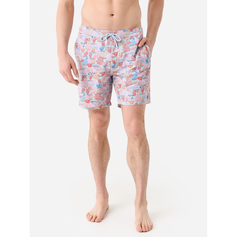 Colorful swim trunk made from breathable, quick-drying fabric.