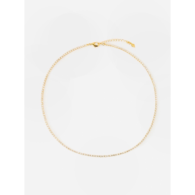 DESCRIPTION:Gold-plated tennis necklace with cubic zirconia stones.FEATURES:NecklaceClasp Closure14k Gold Plated Brass2mm Cubic Zirconia StonesAdjustable Length: 16 in. + 2 in. ExtenderOne Size