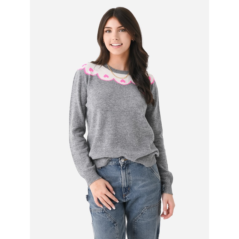 Cashmere crewneck sweater featuring an intarsia knit yoke detail.