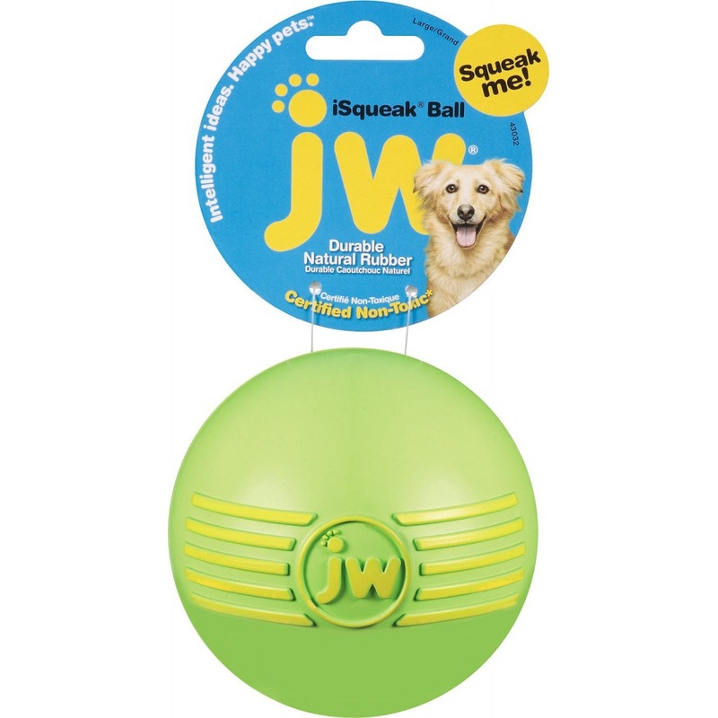 JW Pet iSqueak Ball is a hard rubber, squeaky, bouncy ball for dogs. These tough, 100% natural rubber toys were developed for and by pet owners in order to provide a superior outlet for interactive fun between dog and owner, as well as for the play and exe