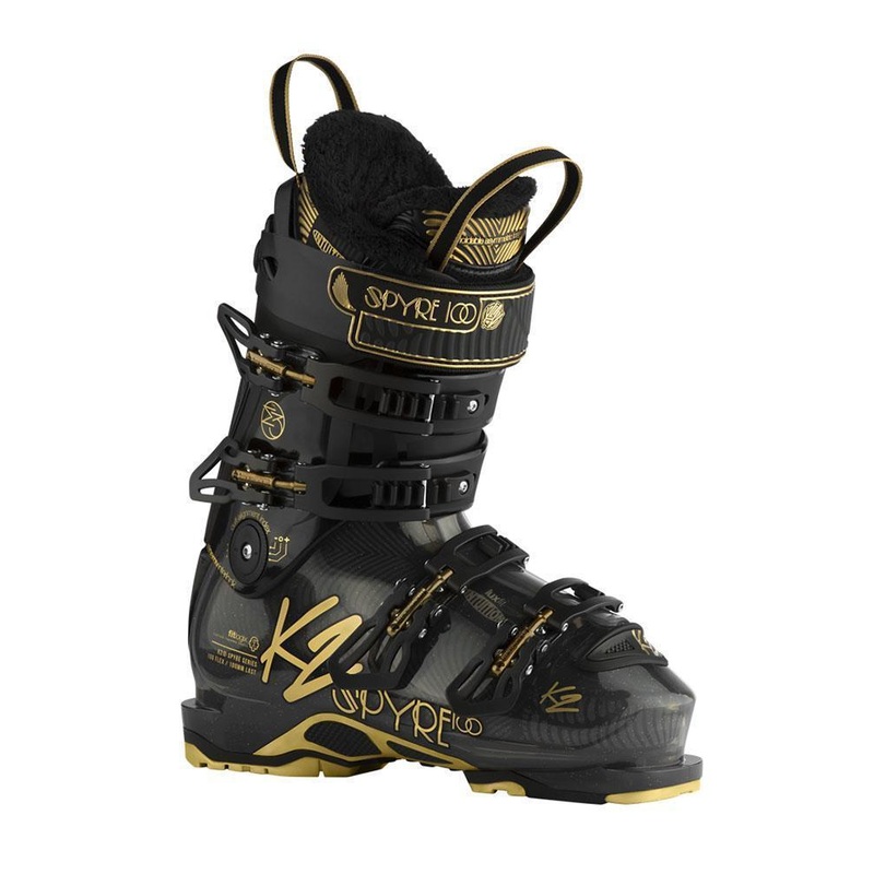DESCRIPTION:Shine on the mountain in the K2 Corporation Gold-lined on the outside and Intuition-lined on the inside, the all-new SpYre 100 delivers an all-mountain performance FEATURES:Energy Interlock, PowerFuse SpYne, Dual Cuff Alignment, Replaceable Out