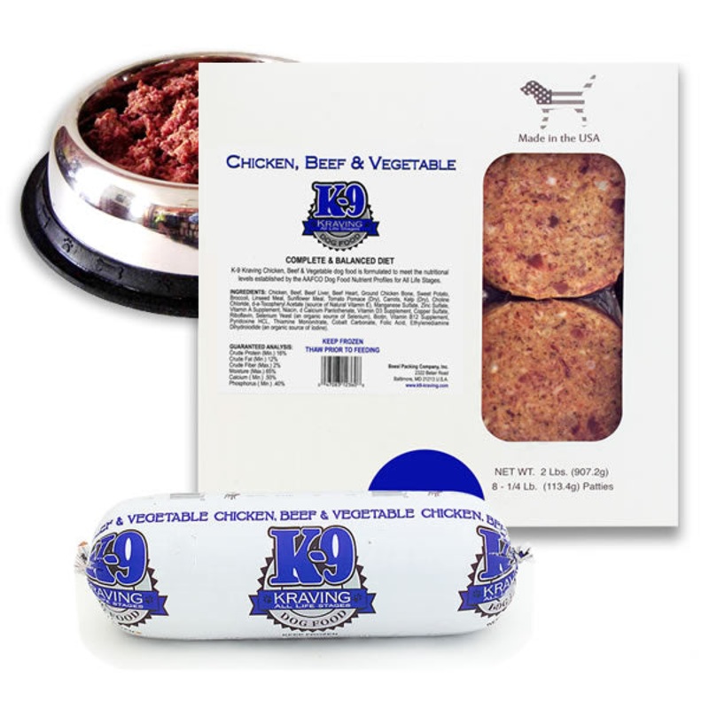 Ingredients:Muscle Meat (Chicken & Beef )Organ Meat (Beef Heart & Liver)Ground Chicken BoneFresh, Low-Carb VegetablesBroccoliCarrotsSweet PotatoEssential Vitamins, Minerals and Trace Minerals (includes Egg Powder)Guaranteed Analysis:Crude Protein (Min.) 16