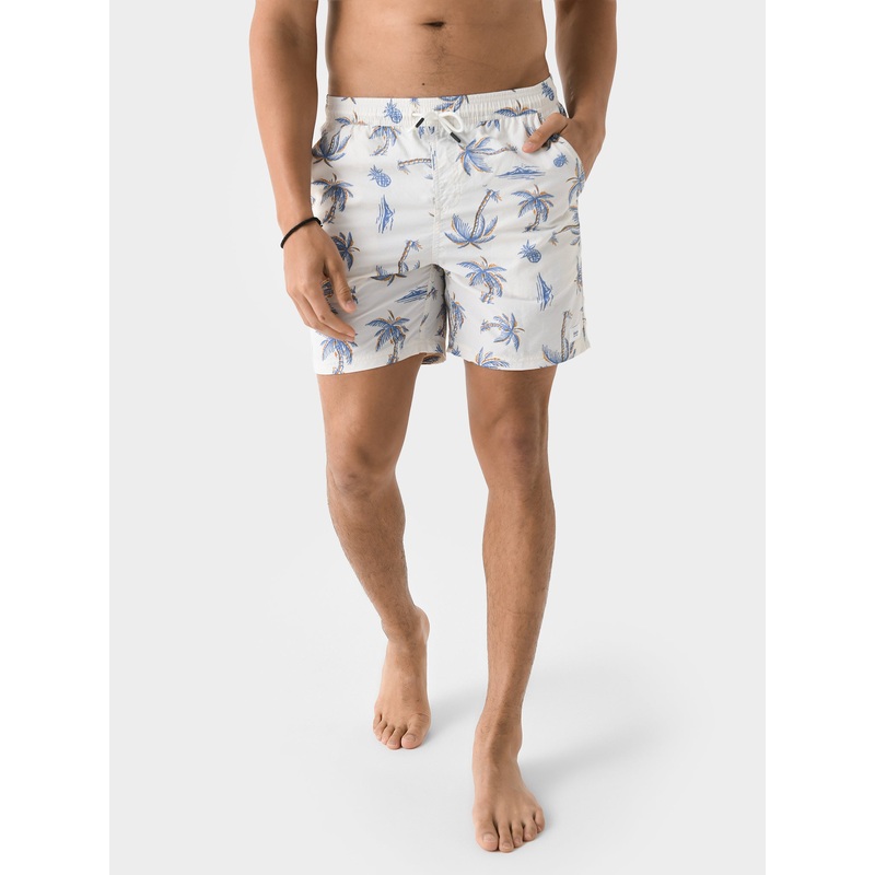 DESCRIPTION:A palm tree-printed swim trunk made from lightweight nylon.FEATURES:Elastic WaistbandAdjustable DrawstringSide PocketsBack PocketMesh LinerOutseam: 17 in.All-Over Novelty Print100% NylonClassic FitModel is wearing size Medium swim trunk.Model's