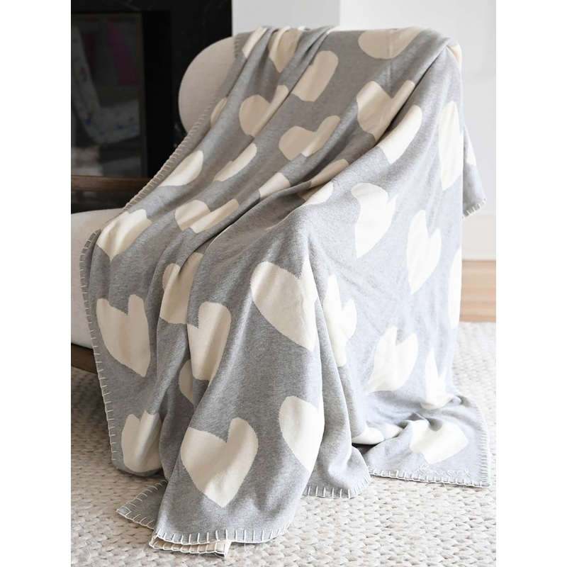 DESCRIPTION:Soft cotton-cashmere blanket with an all-over heart print.FEATURES:All-Over Novelty PrintCozy Cotton Cashmere BlendImported95% Cotton, 5% Cashmere 55 in. Width x 75 in. Length