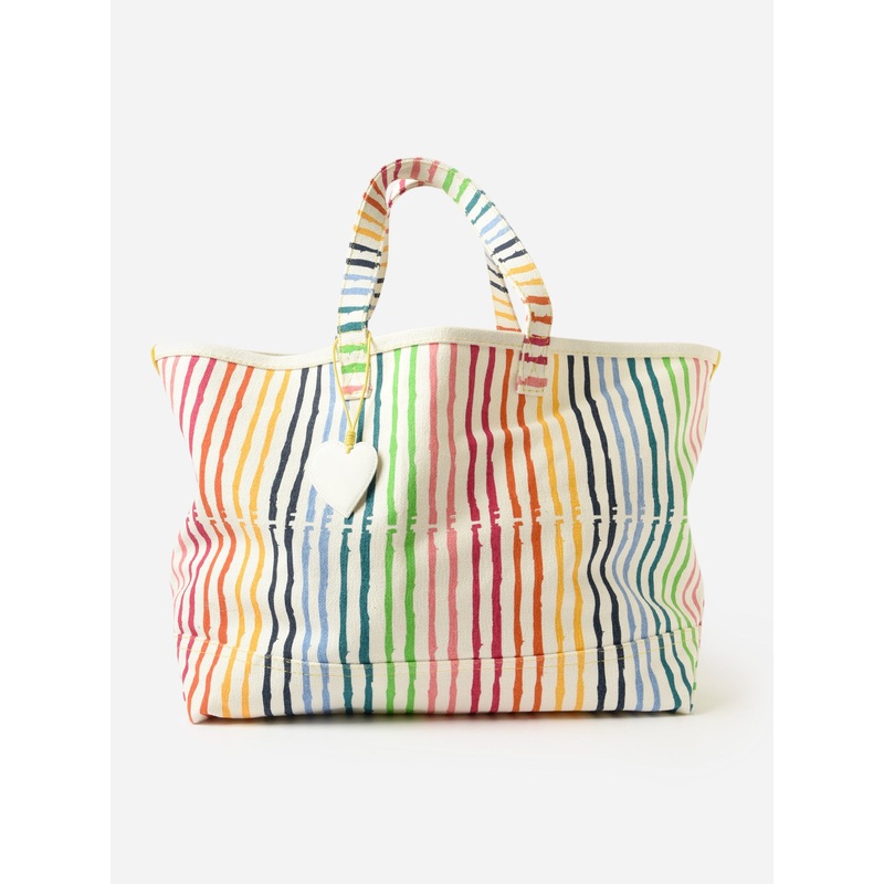 DESCRIPTION:A cotton canvas tote bag featuring Kerri's 'Summer Stripes' artwork.FEATURES:Open TopLeather Heart CharmInterior PocketAll-Over Stripe Print100% Cotton CanvasDimensions: 21.5 in. W x 12 in. H x 7.25 in. D