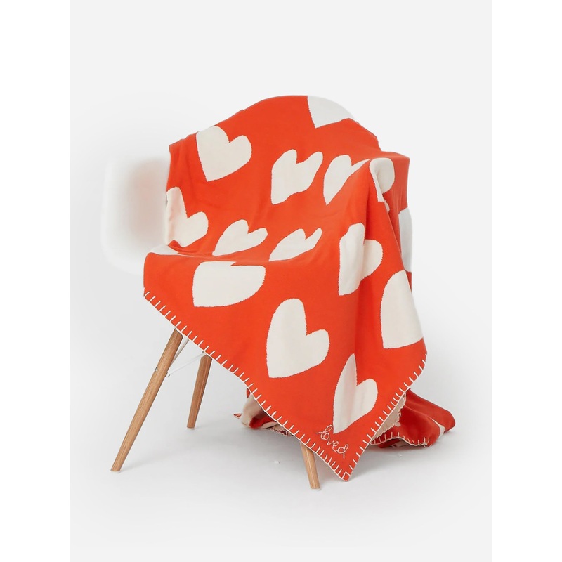 DESCRIPTION:A reversible blanket featuring a jacquard imperfect heart print and stitched edges.