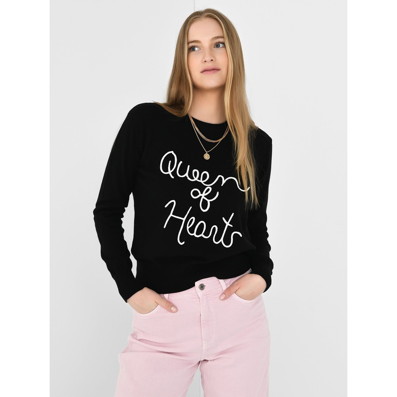 A soft cotton knit sweater featuring a contrast embroidered rope graphic.