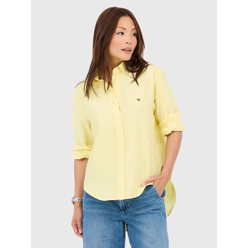 DESCRIPTION:This button-up offers unique styling possibilities with a side cinch button to create a chic asymmetrical silhouette, or wear it as a classic shirt.FEATURES:Spread CollarButton CuffsButton-Down PlacketEmbroidered DesignsCurved Hem100% CottonRel