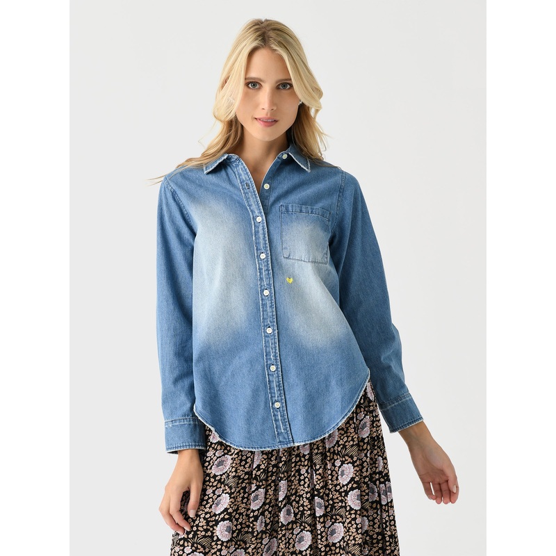 A classic button-down shirt made from lightweight denim with a contrast embroidered heart detail.