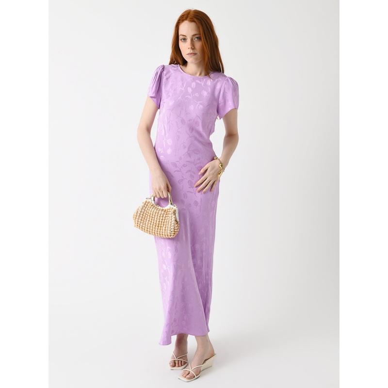 DESCRIPTION:A figure-skimming bias maxi dress made from a silky jacquard fabric.FEATURES:Round NecklineBack Keyhole Button ClosureCap SleevesBias Cut SkirtMaxi SilhouetteJacquard Fabrication100% ViscoseClassic FitModel is wearing size US 4/UK 8 dress.Model
