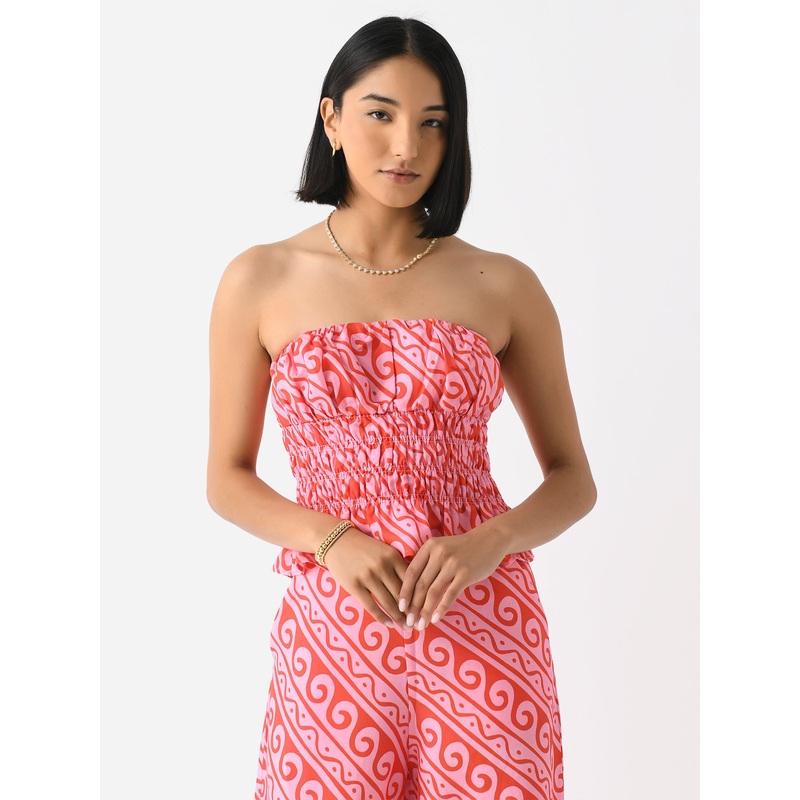 DESCRIPTION:A strapless top made from lightweight fabric with a shirred panel and peplum hem.FEATURES:Strapless NecklineShirred PanelPeplum HemAll-Over Novelty Print80% Lyocell, 20% LinenClassic FitModel is wearing size US4/UK8 top.Model's Measurements: He