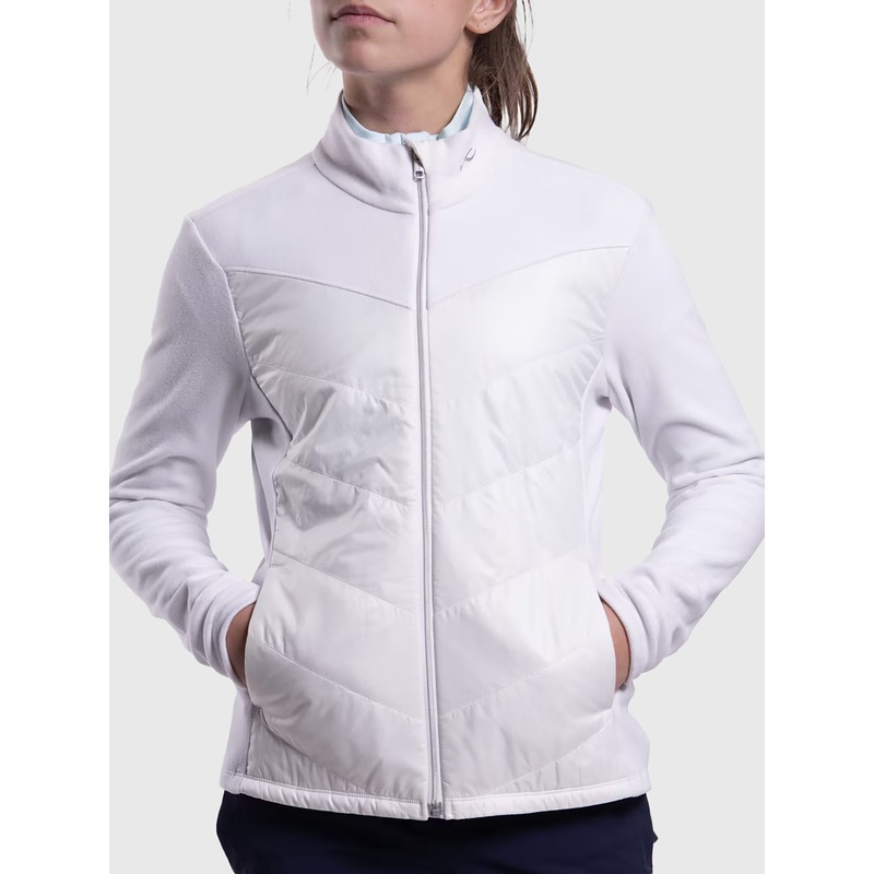 A comfortable mid-layer jacket made from soft stretch fleece with a front insulation panel for added warmth.