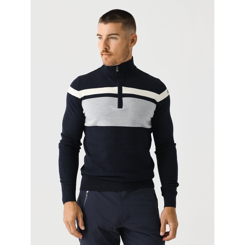 DESCRIPTION:Alpine-inspired merino wool half-zip sweater.FEATURES:Stand-Up CollarHalf-Zip ClosureSet-In SleevesRibbed Neckline, Cuffs and HemQuick-DryingYKK ZipperKnit FabricationWool BlendClassic FitModel is wearing size 50 sweater.Model's Measurements: H