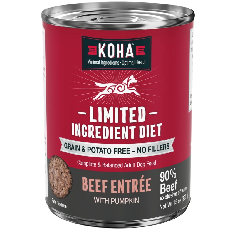 Koha Limited Ingredient Diet Beef Entre for DogsLimited Ingredient Diet Beef Entre for Dogs Ideal for extreme food sensitivities, sensitive stomachs, and digestive issues.Help your pet thrive with KOHA Limited Ingredient DietBeef Entre for Dogs. With only