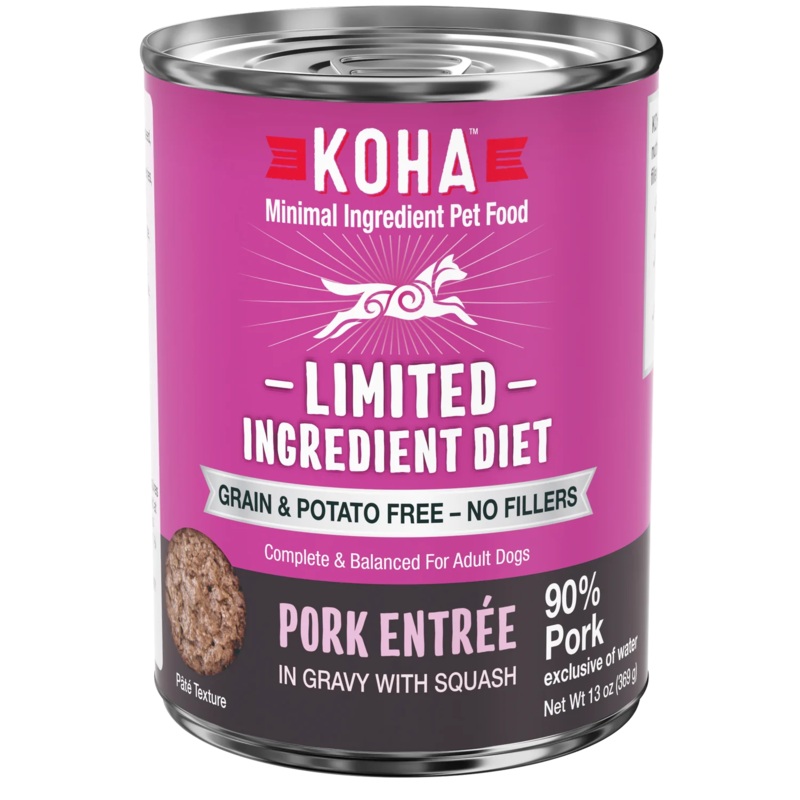 Koha Limited Ingredient Diet Pork Entre for DogsLimited Ingredient Diet Pork Entre for Dogs Ideal for extreme food sensitivities, sensitive stomachs, and digestive issues. Help your pet thrive with KOHA Limited Ingredient Diet Pork Entre for Dogs. With onl