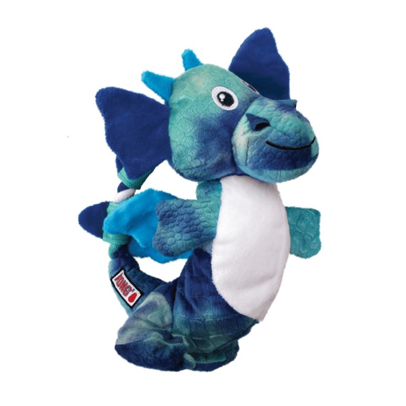 KONG Dragon Knots are a whimsical addition to the Knots collection. The realistic feel of the internal knotted rope, big body squeaker and crinkling sound of the magical wings get dogs geared for play and satisfies their natural instincts. The strong rope knot tug toy has minimal stuffing for less mess and charms with long-lasting fun.
