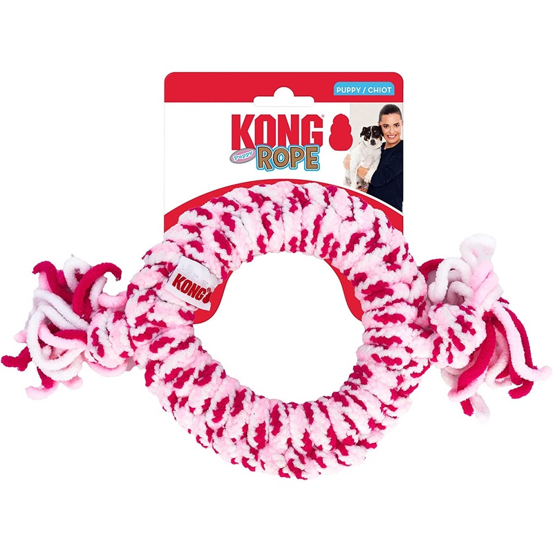 The KONG Rope Puppy Ball, Stick, Tug and Ring provide a satisfying chewing experience with a puppy-specific, ultra-soft, durable yarn material that is knitted into a rope shape. This robust construction is built for long-lasting play while supporting insti