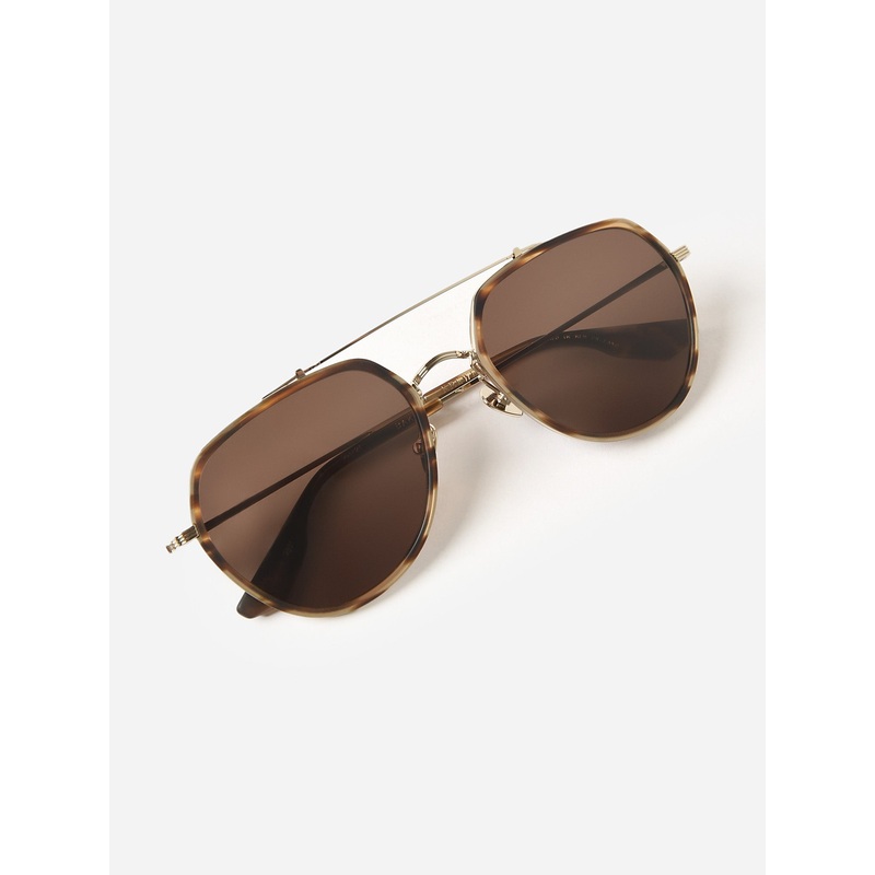 DESCRIPTION:Modern aviator sunglasses with a subtle oversized silhouette with metal and acetate details.FEATURES:Aviator ShapeFull Rim StyleLens: Amber (Hickory), Grass Green (Crystal)Frame: Acetate, 12K Gold Plated Hardware (Hickory), 24K Gold Plated Tita