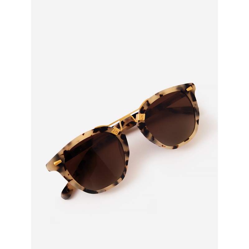 DESCRIPTION:Matte acetate sunglasses with gold-plated hardware and a crisp silhouette.FEATURES:SunglassesRound ShapeFull Rim StyleLens: Amber GradientFrame: Acetate, 24K Gold Plated HardwarePolarized, UVA + UVB ProtectionSize: 48-24-145Prescription ReadyCl
