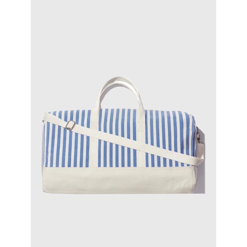 This roomy, striped duffle bag, made from cotton canvas with a removable crossbody strap, is perfect for weekend getaways.