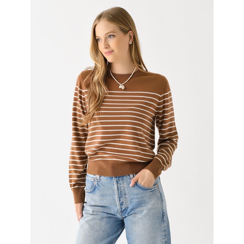 A classic crewneck sweater with a striped design made from sumptuous cashmere.