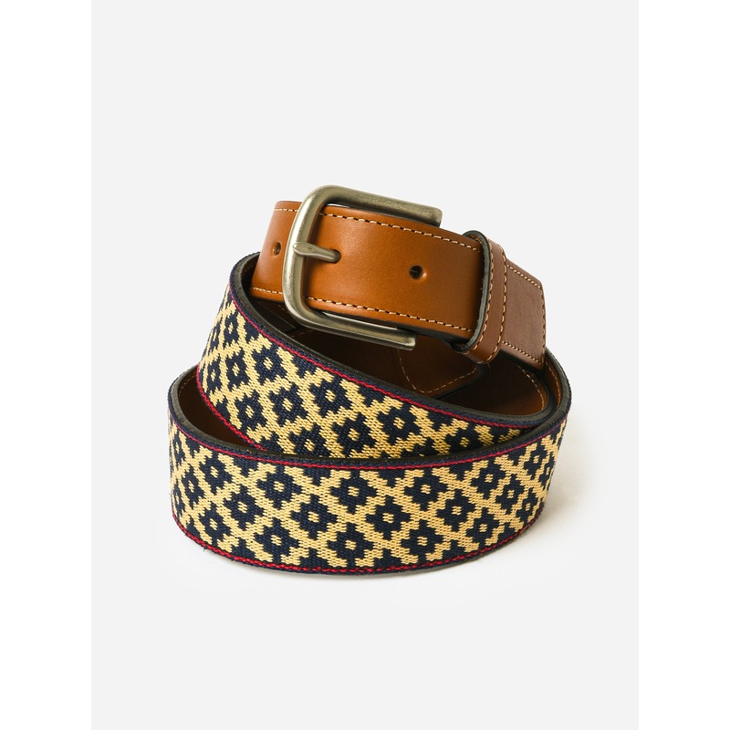 DESCRIPTION:Leather belt with hand-stitched woven fabric.FEATURES:BeltNickel-Matte Solid Brass BuckleVegetable Tanned Cognac LeatherHand-Stitched Woven FabricWidth: 1.25 in.